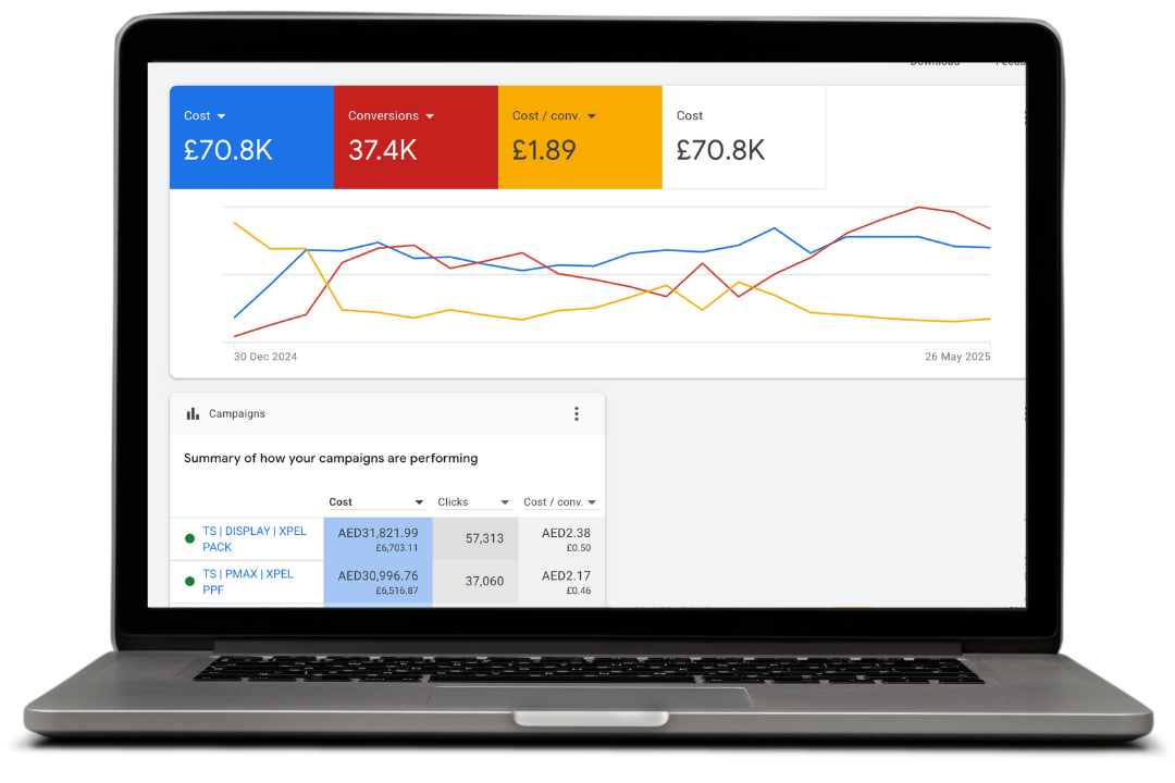 We run campaigns that drive sales, not just clicks. From Google to Meta, we manage everything: strategy, design, data, landing pages, tracking, and optimisation — all managed in-house, all built to bring real enquiries and results.